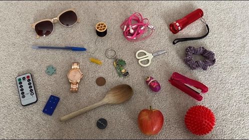 Give yourself a couple of colours and find 5 objects from where you are sat that are those colours. For example, red and green. Looking around you encourages us to take in our surroundings. Next, try to expand on those categories, such as trying to find 5 red objects you could fit in your pencil case. Or find 5 green objects you can balance on your head.